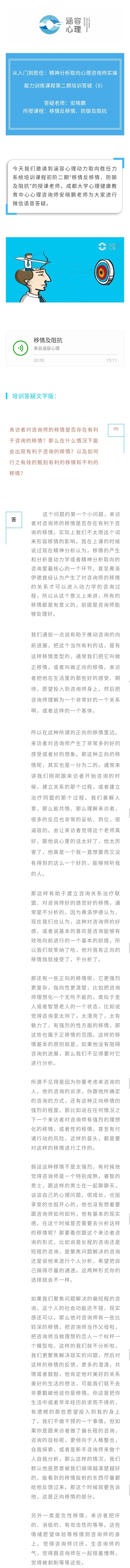 【初阶培训答疑5】移情及阻抗